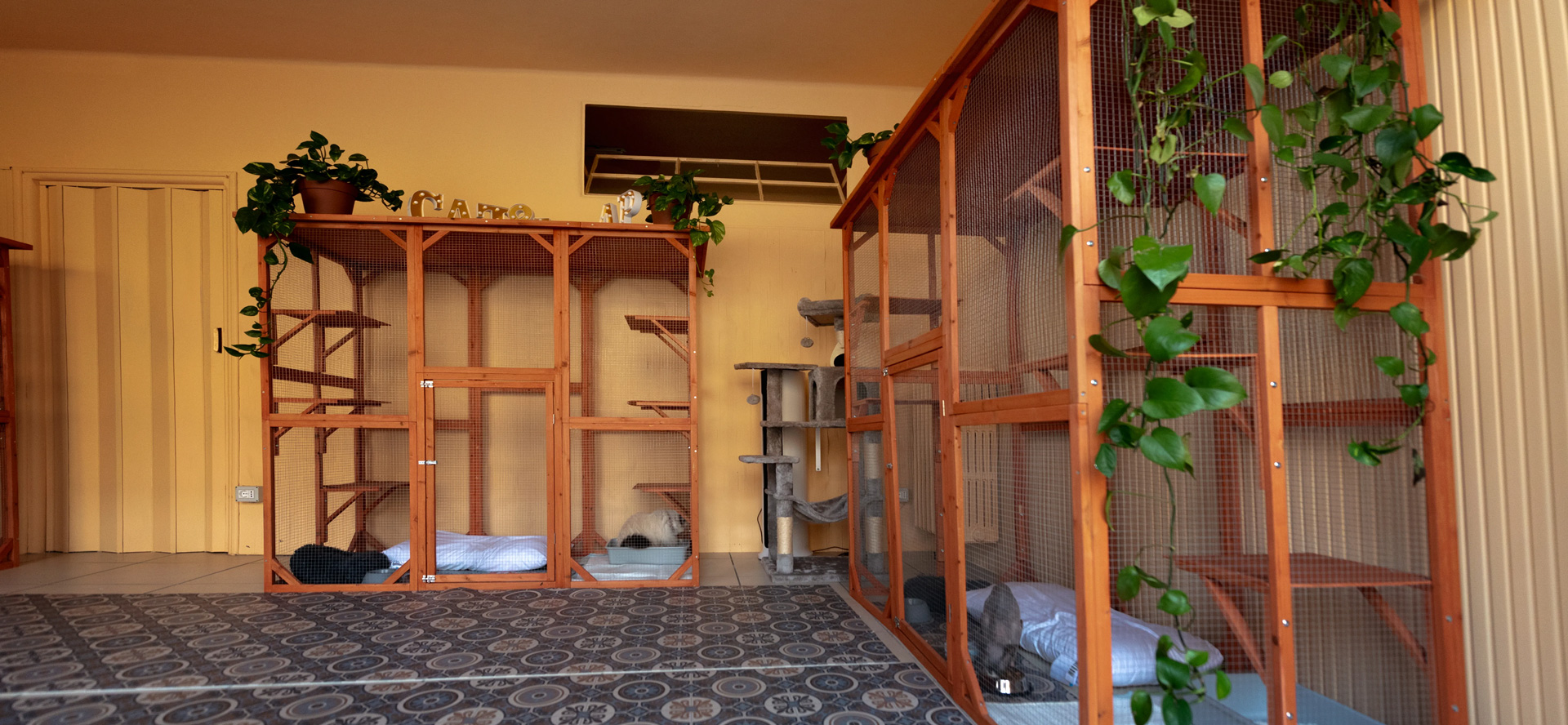 Ambienti climatizzati estate e inverno, con musica e luci pensate per rilassare i mici.
